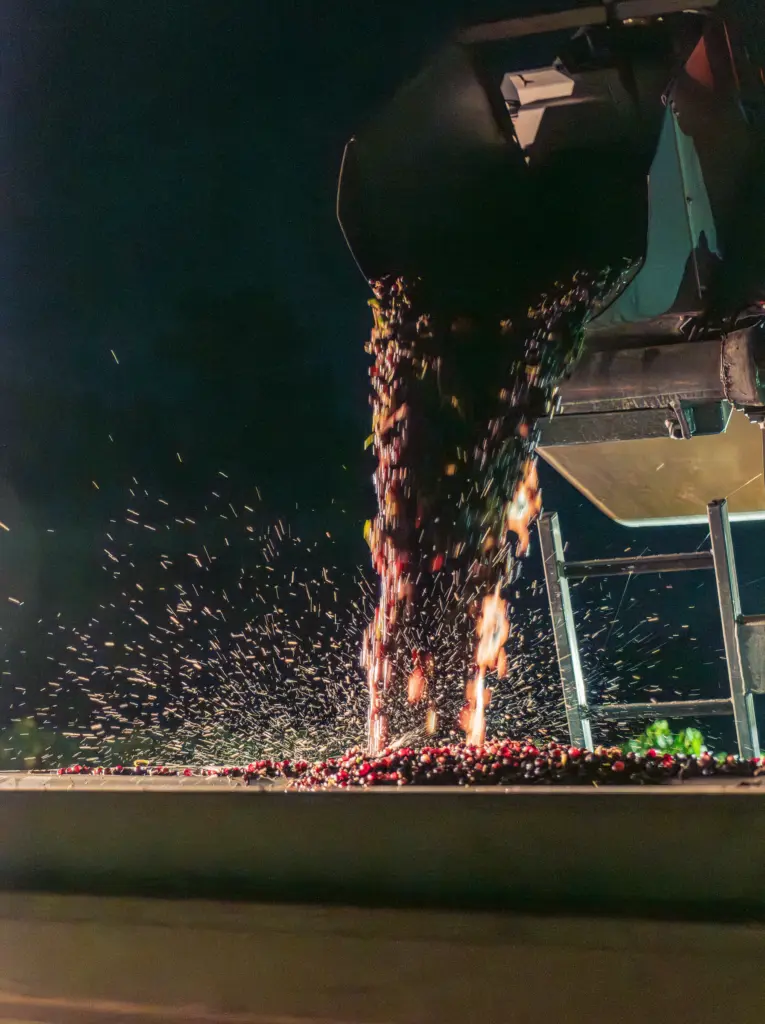 Nos raisins sont récoltés à la tombée de la nuit, lorsque la fraîcheur de l’air préserve leurs arômes délicats et leur fraîcheur naturelle.